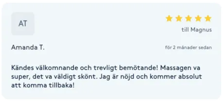 Jag har hjälpt hundratals personer att minska besvär i kroppen. Oavsett om du upplever smärta, stress, spänningar eller endast är i behov av avkoppling så kan jag hjälpa dig.