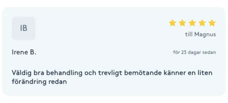 Efter att vi haft ett kort samtal så sätter vi igång med behandlingen och anpassar den till din specifika behov och hur du föredrar det. Efter första samtalet så har vi fått en bra förståelse för hur vi kan ge dig bästa möjliga resultat.